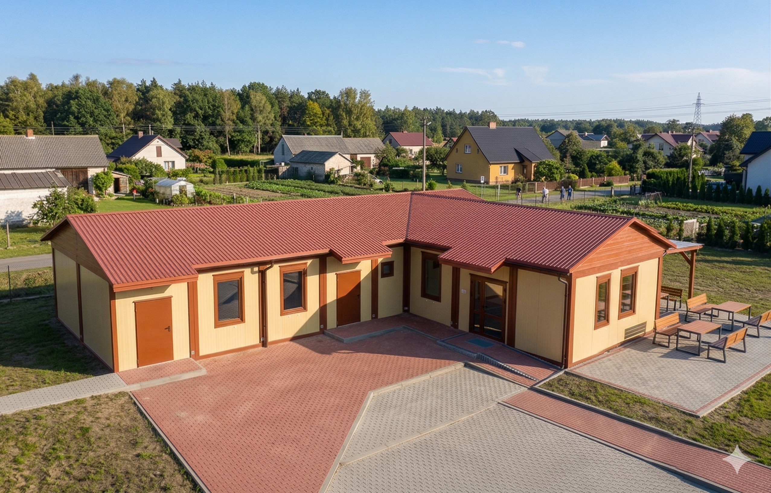 Nowy obiekt powstanie na terenie rekreacyjnym, w sąsiedztwie istniejącego boiska i placu zabaw. Wybór technologii kontenerowej pozwoli na sprawną realizację prac, przy zachowaniu wysokich standardów energetycznych.