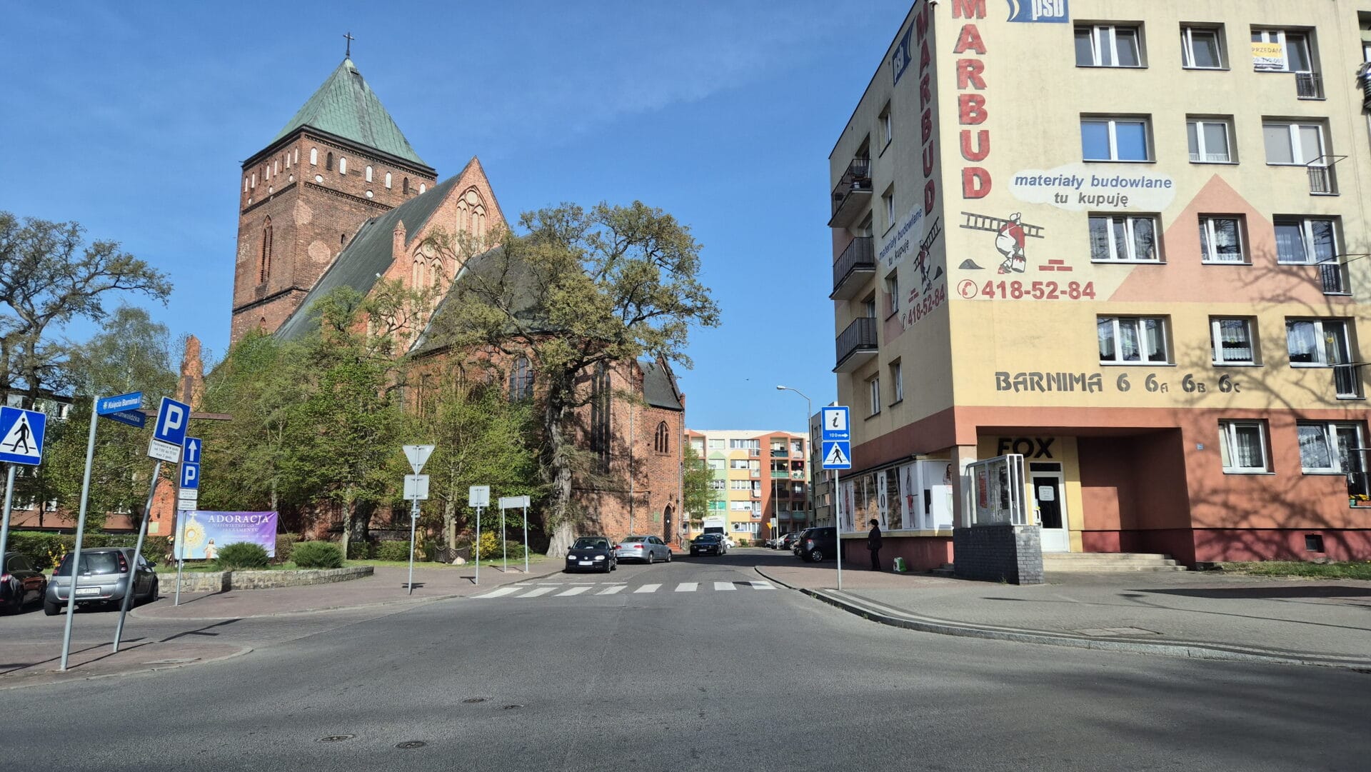 Na odcinku od skrzyżowania z ulicą Barnima I, przy Kościele Św. Katarzyny od strony zakrystii.